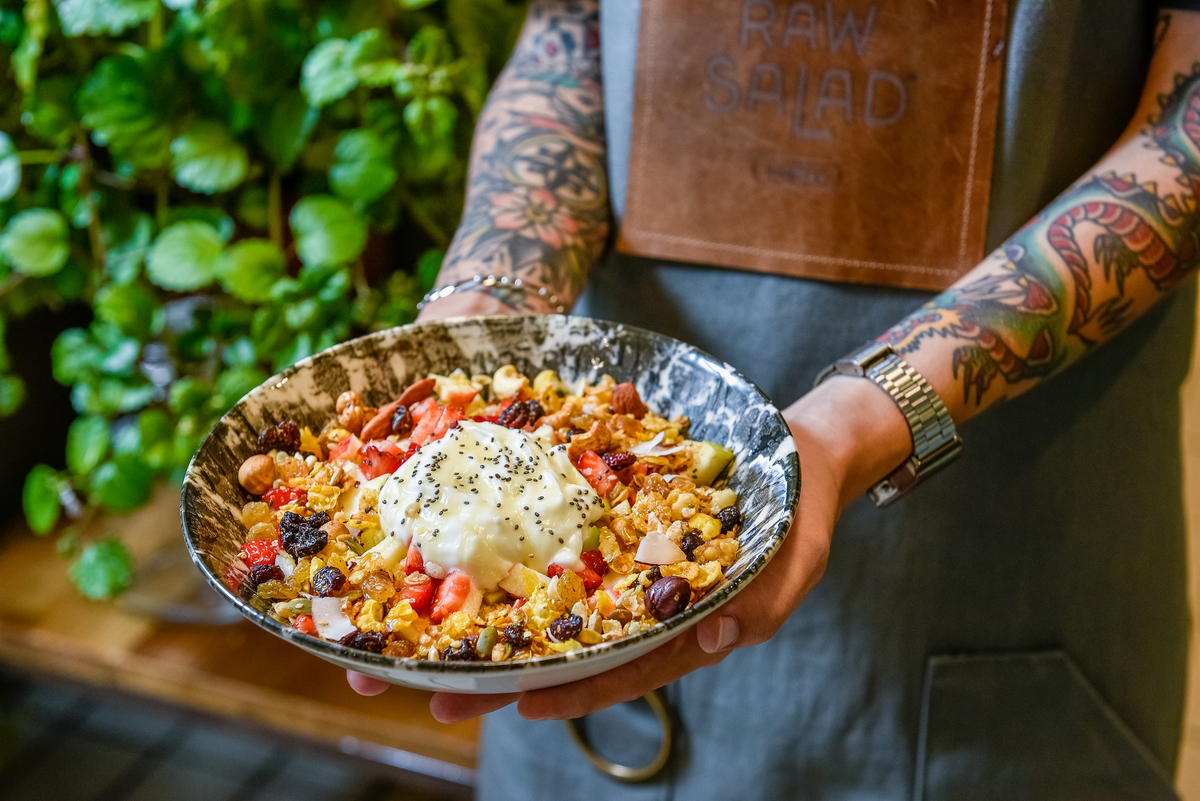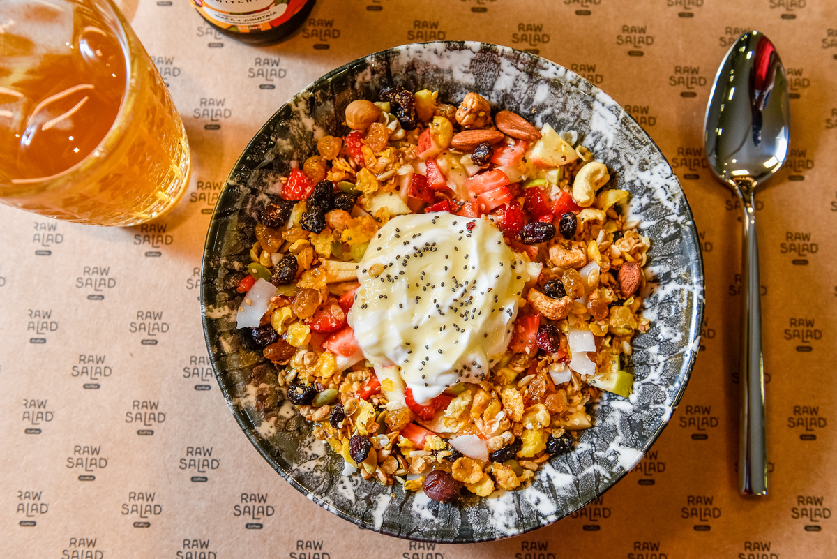 A Raw Salad oferece Brunch, Cafés, Saladas.